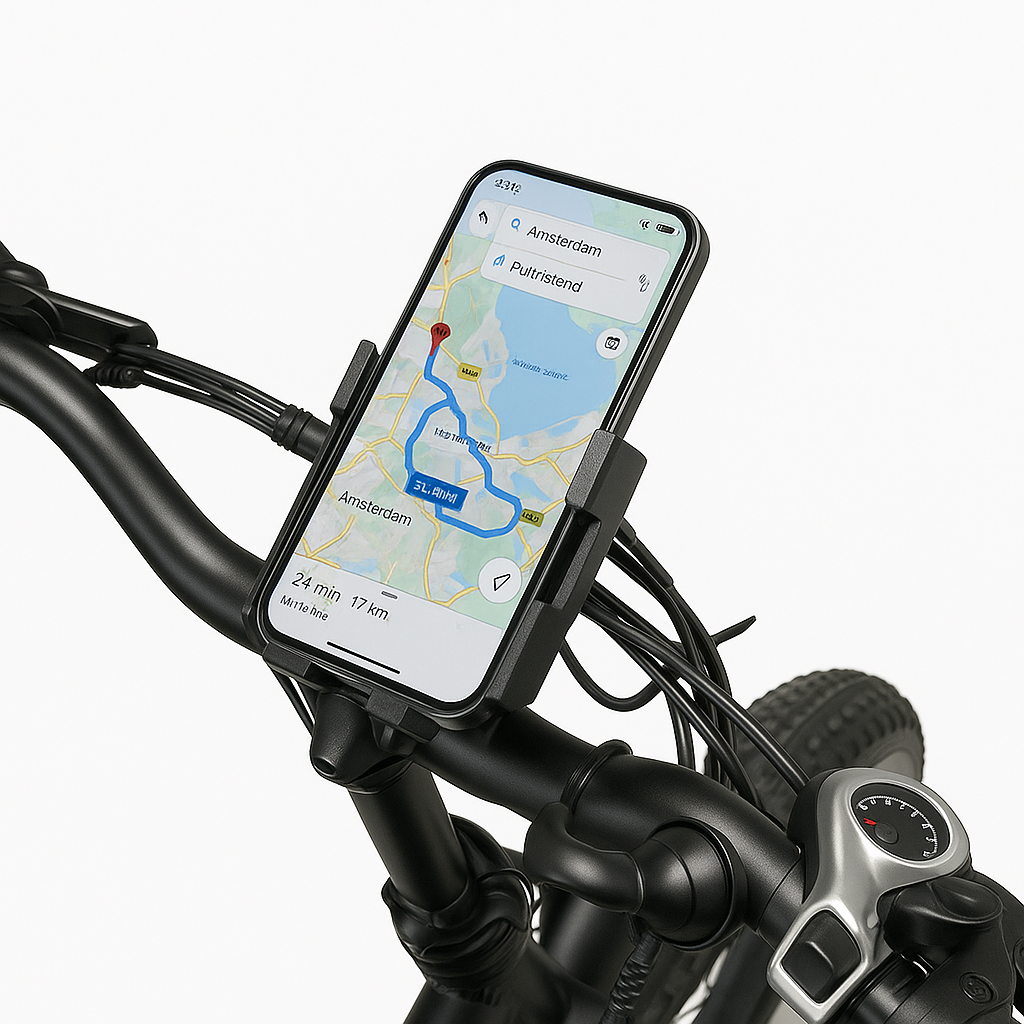 De Grandeux telefoonhouder is ontworpen voor dagelijks gebruik op fatbikes en e-bikes. Deze houder houdt je telefoon veilig op zijn plek, of je nu navigeert door de stad of over ruwer terrein rijdt.